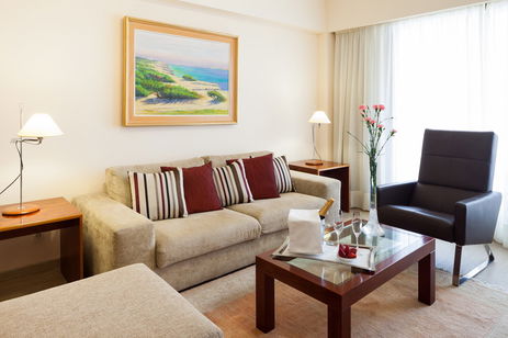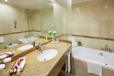 Espaciosas y lujosas habitaciones con salón independiente y amplia terraza, conexión WIFI gratuita, aire acondicionado, caja fuerte gratuita con capacidad para portátiles y tablets, albornoz y zapatillas, teléfono directo, TV interactiva vía satélite, mini bar, carta de almohadas... ...