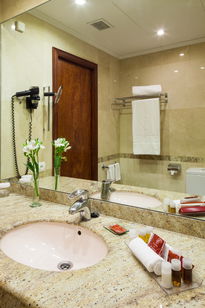 Comode camere con aria condizionata, telefono directo e TV: via satellite, radiosveglia, mini bar, menu di cuscini, conessione Wi-Fi gratuita, servizio camera e lavanderia. Stanze da bagno completamente rinnovate ed attrezzate con asciugacapelli, specchio con aumento e telefono.